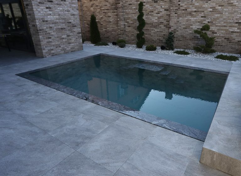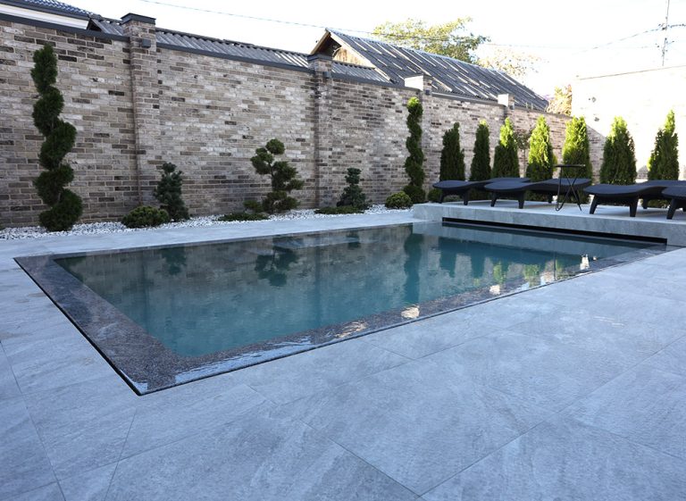 Отделка бассейна, терраса, дизайн ландшафта:Отделка плиткой прилегающей территории.